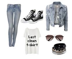 Dżinsy, bluzeczka z nadrukiem, brązowa marynarka i botki.
